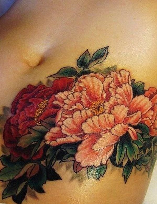 漂亮的牡丹花朵纹身图案