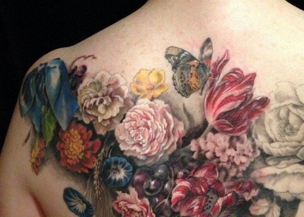 逼真的超现实主义花纹身图案来自纹身师莫拉莱斯