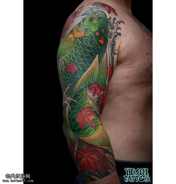 鲤鱼枫叶纹身图案