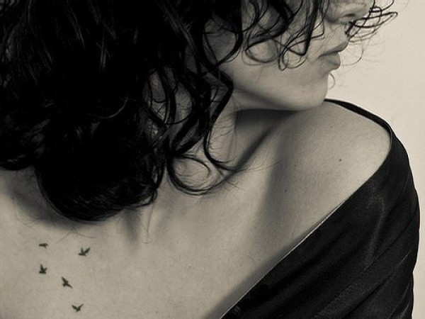 女孩胸前性感蝴蝶纹身图