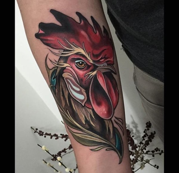 公鸡纹身图案现代纹身风格_动物纹身图案大全_纹身图吧