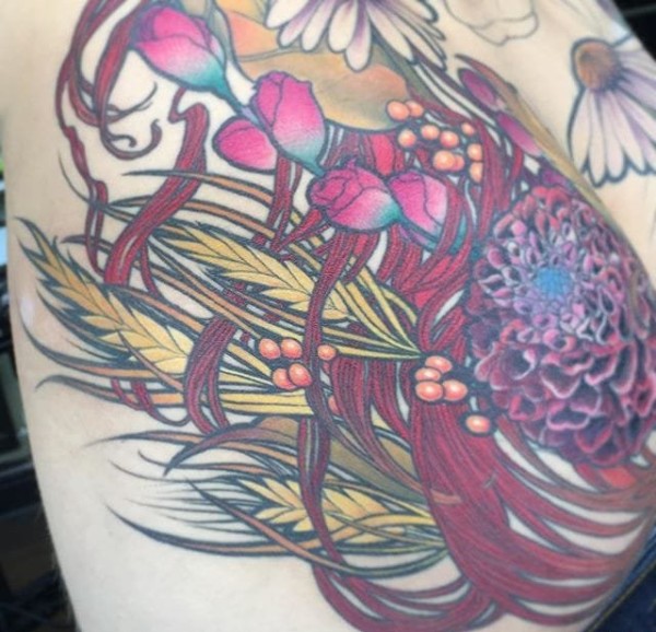 逼真的超现实主义花纹身图案来自纹身师莫拉莱斯