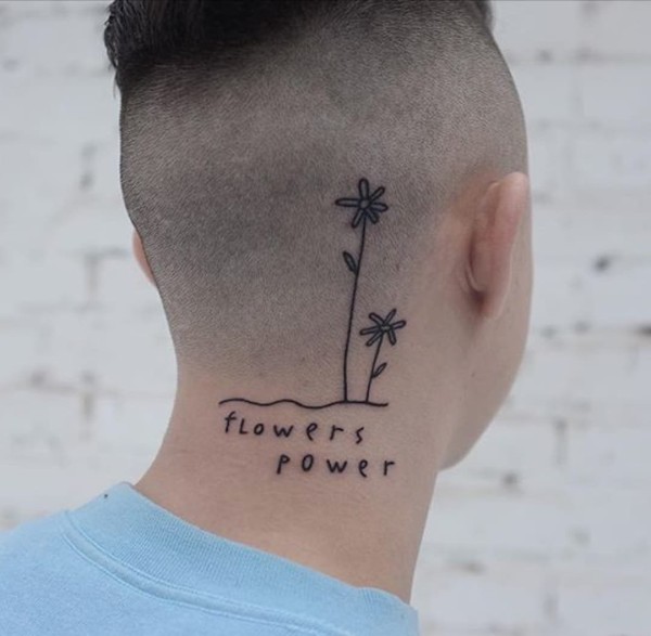 女生后颈部性感又可爱的小清新纹身图案