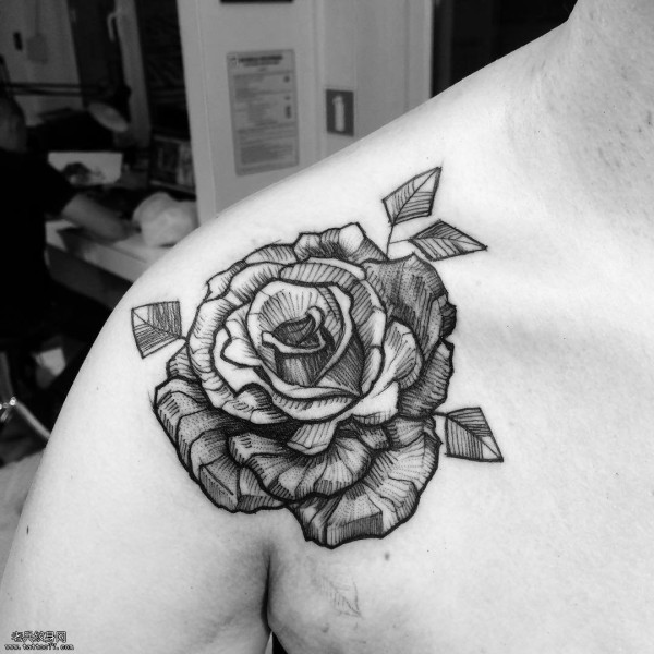 女生肩花纹身_15张女性双肩对称的肩花纹身图案作品图片