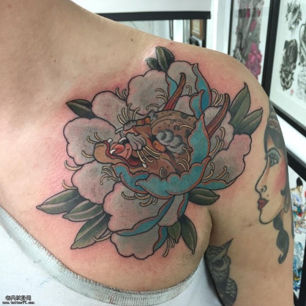牡丹豹子纹身图案