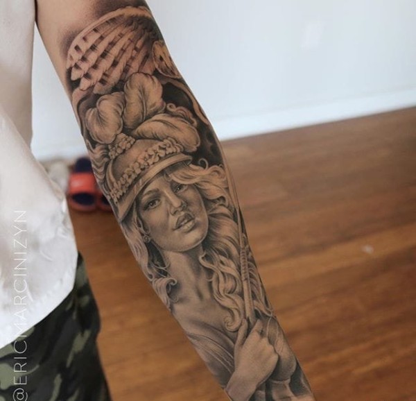 超现实风格的黑灰色漂亮的时尚女士纹身图案来自埃里克