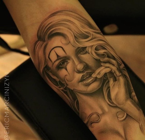 超现实风格的黑灰色漂亮的时尚女士纹身图案来自埃里克