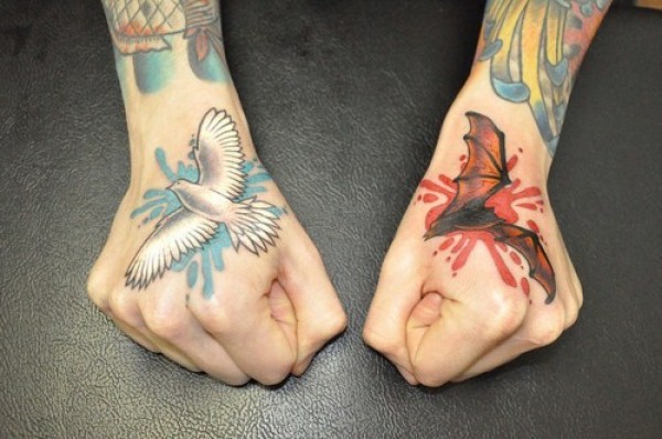 左手雄鹰右手蝙蝠纹身图