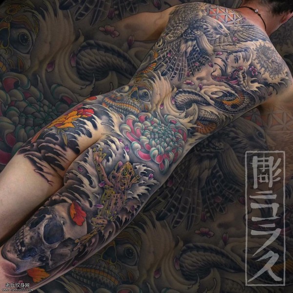 鹰 蛇嘎巴拉菊花骷髅蟾蜍纹身图案