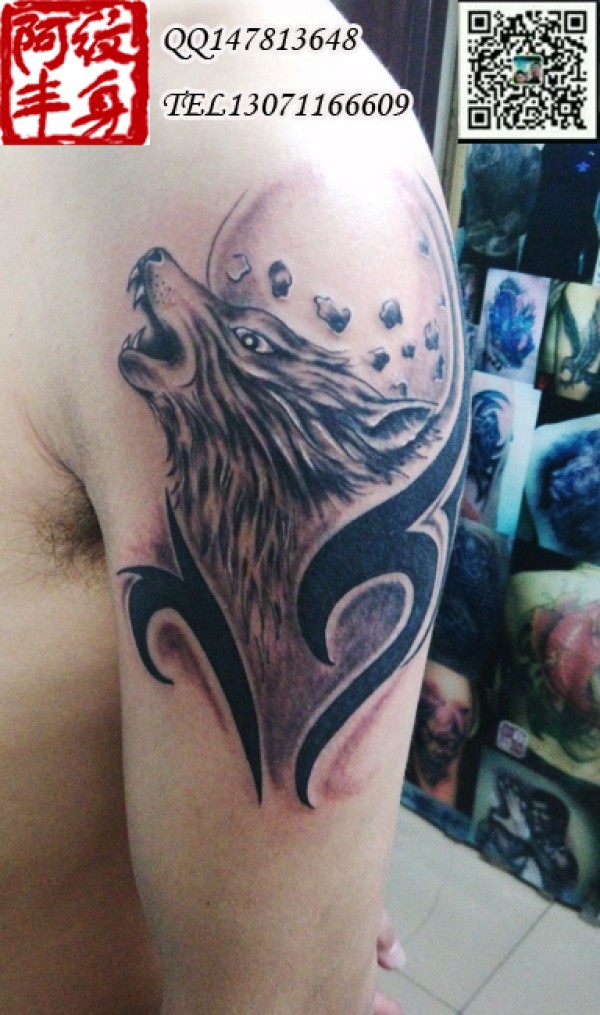狼头肩部纹身/肩部纹身/肩部纹身图案/丰台纹身/南三环附近纹身/阿丰纹身