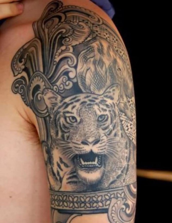 霸气半胛老虎纹身_动物纹身图案大全_纹身图吧