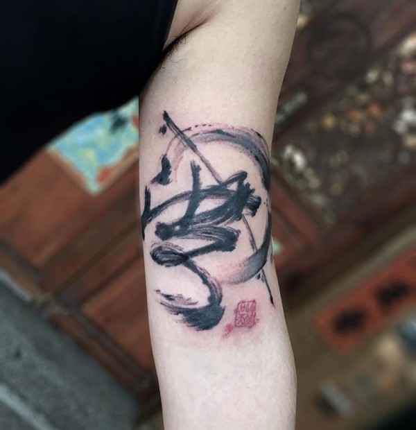 帅气的毛笔书法中文字风格纹身图案