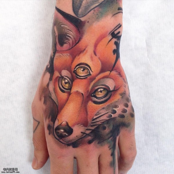 手背狐狸纹身图案
