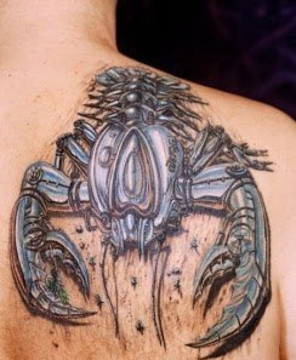 男性背部威猛帅气的蝎子纹身图案