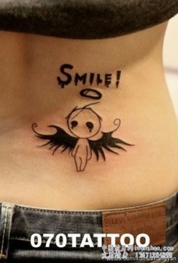 分享一款腰部时尚性感的蝶恋花纹身图案_腰部纹身图案大全_纹身图吧