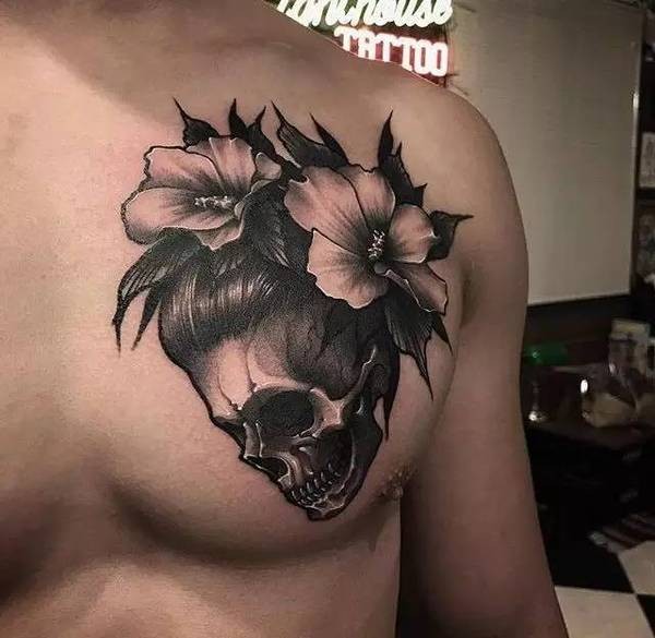 韩国纹身师Gara暗黑系黑灰写实骷髅纹身