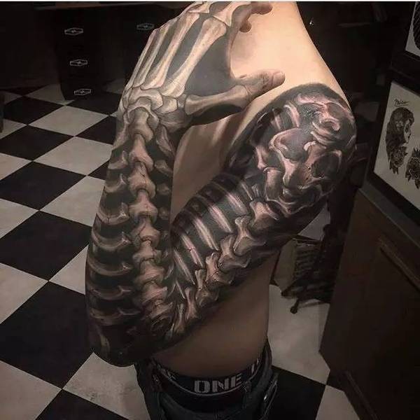 韩国纹身师Gara暗黑系黑灰写实骷髅纹身
