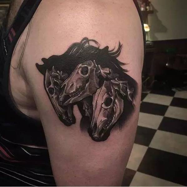 韩国纹身师Gara暗黑系黑灰写实骷髅纹身