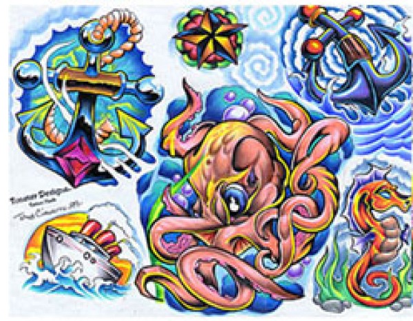 一组17张动漫海贼王路飞纹身手稿图案素材