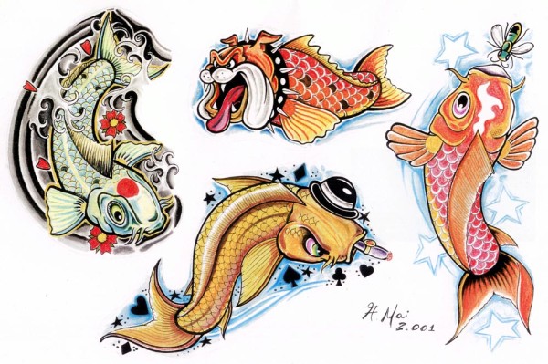 双鱼座纹身手稿_45张十二星座之双鱼手稿纹身图案