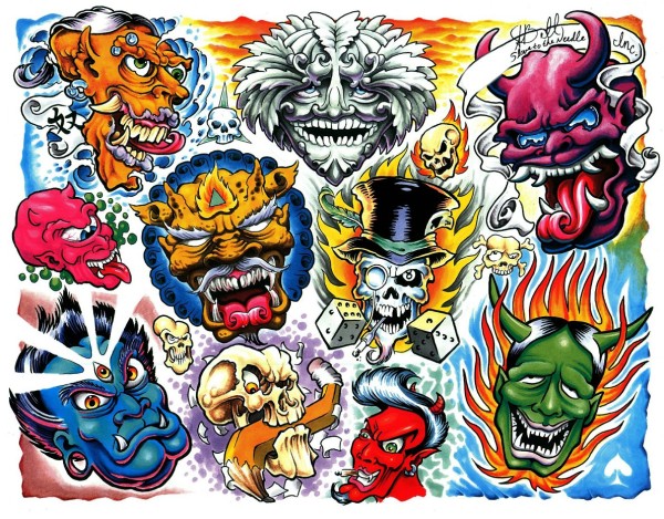 能面万媚纹身手稿_52张日式能剧面具纹身手稿图案素材欣赏