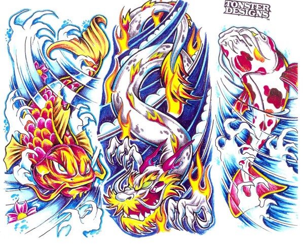 龙纹身手稿_一组老传统黑灰龙手稿纹身图案