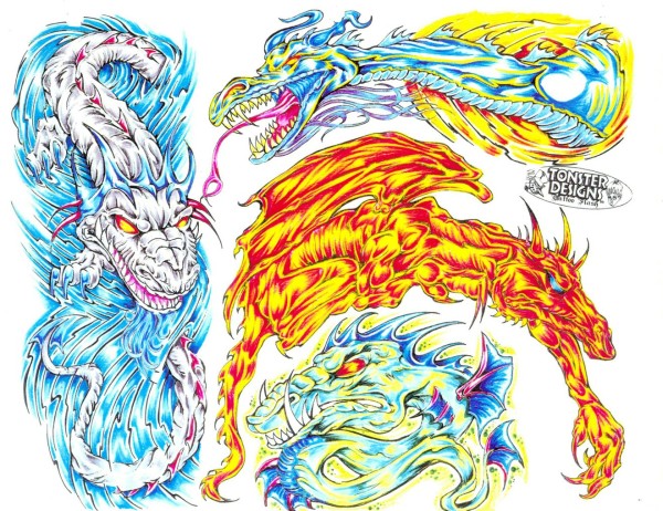 龙纹身手稿_一组老传统黑灰龙手稿纹身图案