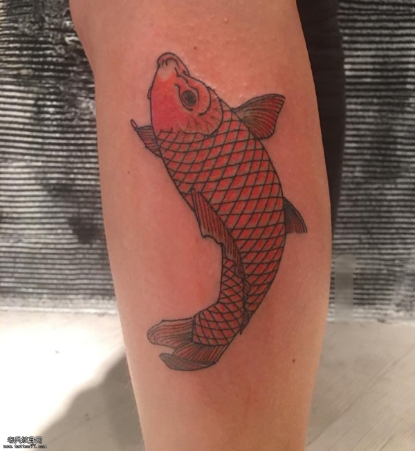 传统鲤鱼花小腿纹身_腿部纹身图案大全_纹身图吧