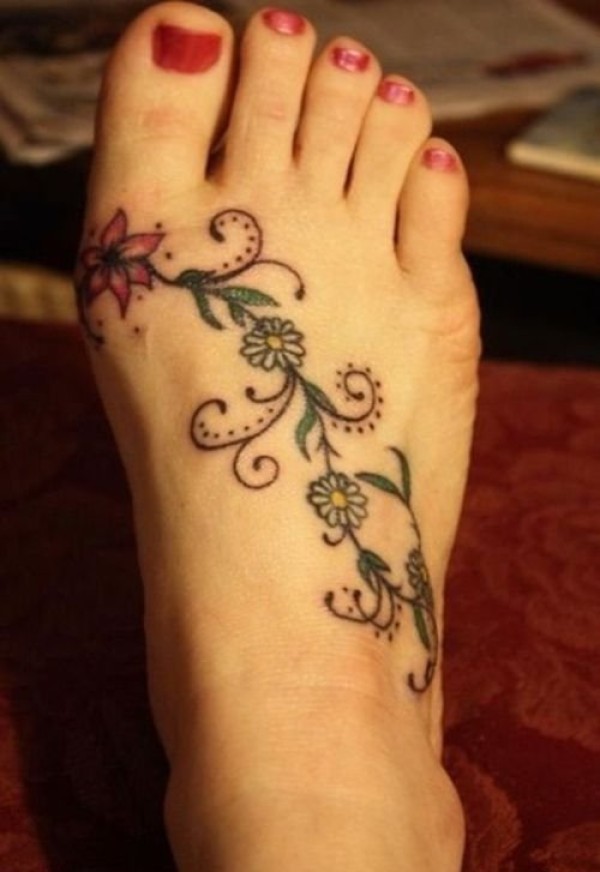 清新花朵腿部纹身图案图片_植物纹身图案大全_纹身图吧