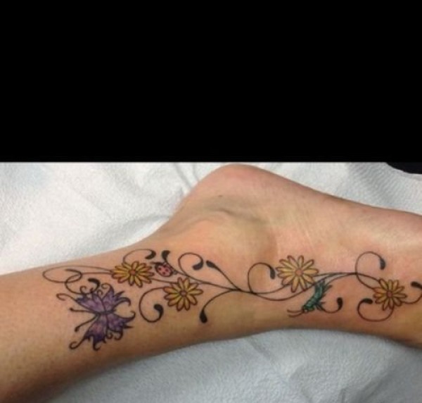清新花朵腿部纹身图案图片_植物纹身图案大全_纹身图吧