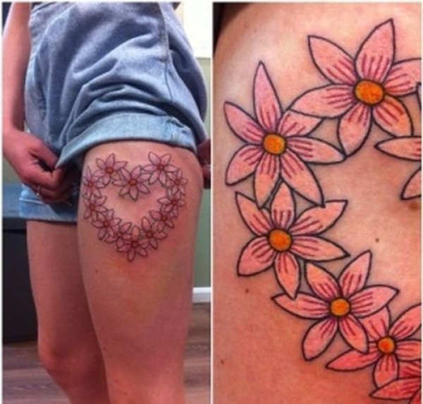 清新花朵腿部纹身图案图片_植物纹身图案大全_纹身图吧