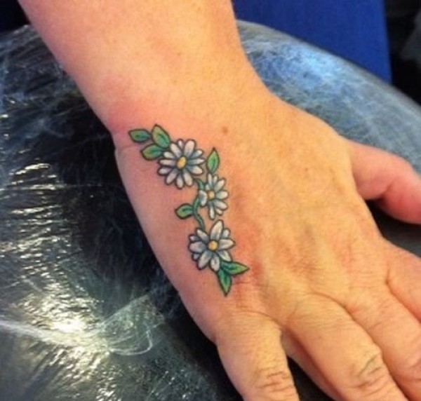 手部个性盛开莲花纹身图片_植物纹身图案大全_纹身图吧
