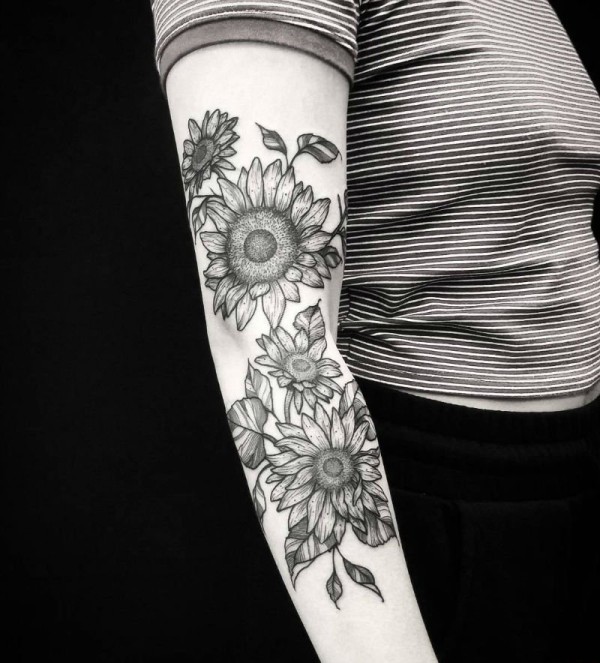 男人大臂黑白彼岸花骷髅_黑白纹身图案大全_纹身图吧