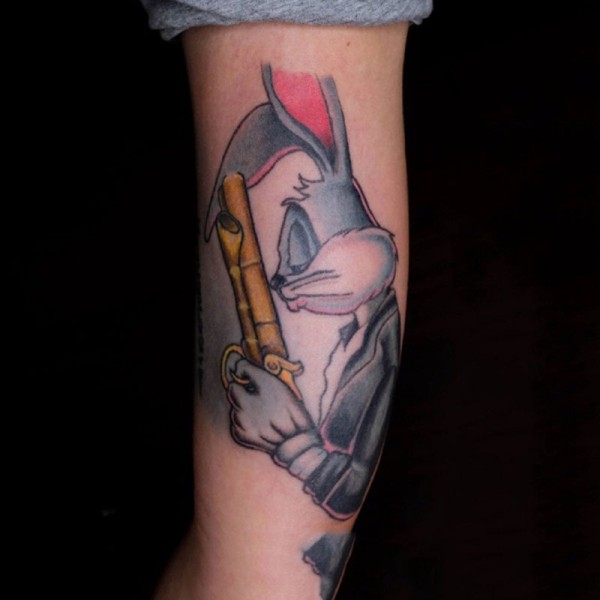 手臂上持枪的帅气兔八哥卡通纹身图案