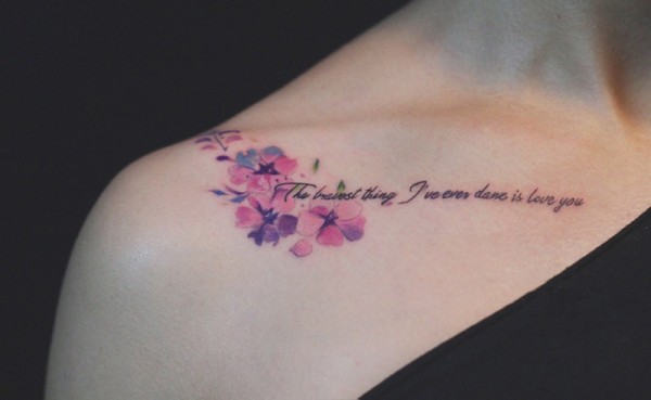 美女锁骨小清新花蕊英文纹身