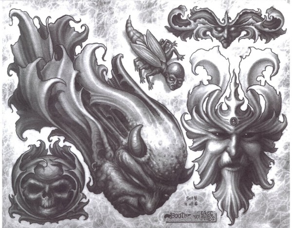 龙纹身手稿_一组老传统黑灰龙手稿纹身图案