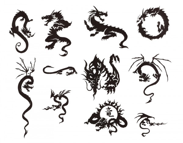 龙纹身手稿_一组老传统黑灰龙手稿纹身图案