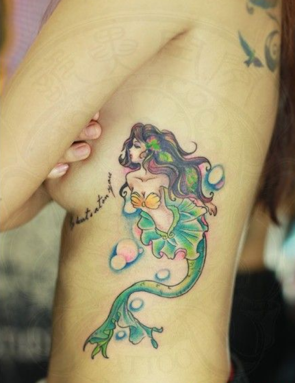 性感侧腰美丽的小美人鱼纹身图案