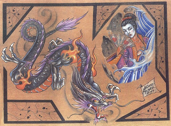 传统艺妓般若纹身图案手稿
