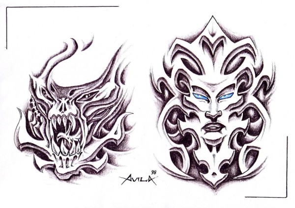 双子座纹身手稿_29张十二星座之双子座纹身图案手稿