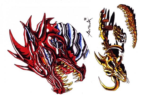 龙纹身手稿_一组老传统黑灰龙手稿纹身图案