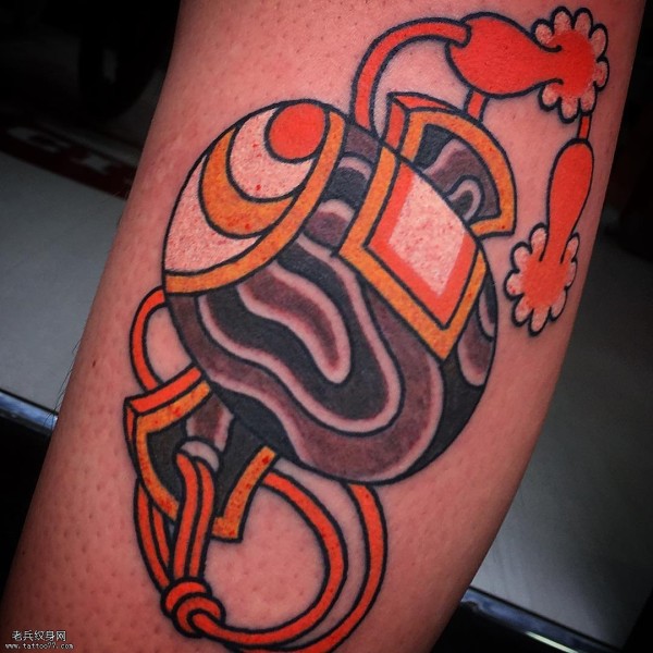 小腿部的鼓纹身图案