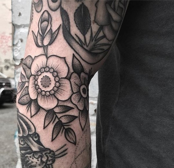 男人大臂黑白彼岸花骷髅_黑白纹身图案大全_纹身图吧