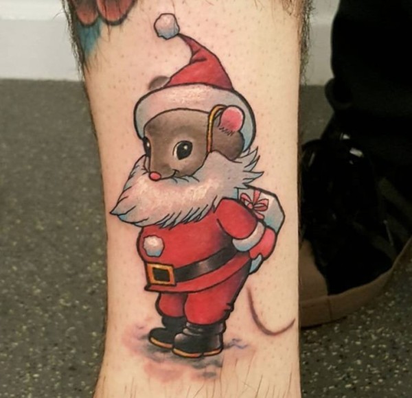 可爱的彩色的水彩圣诞老人纹身图案