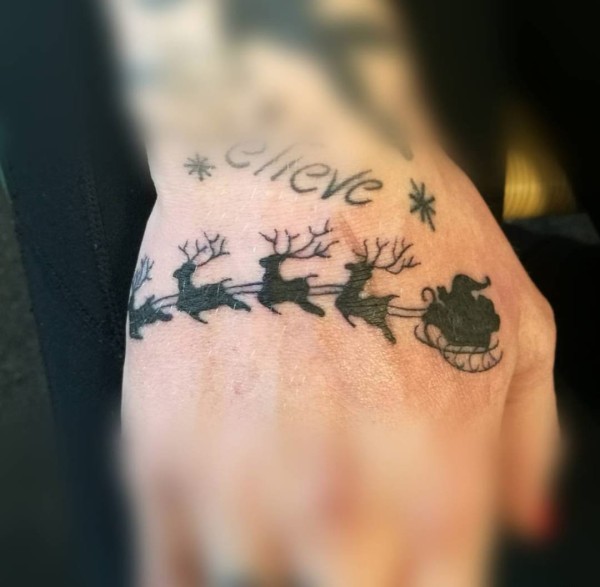 可爱的彩色的水彩圣诞老人纹身图案