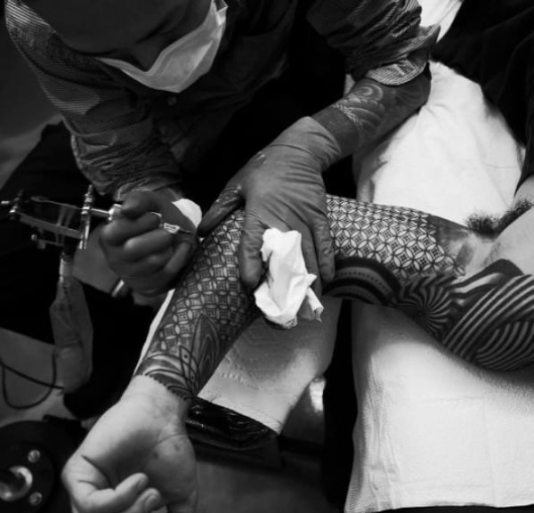 男性超霸气的几何满臂纹身图案来自纹身师尼萨科