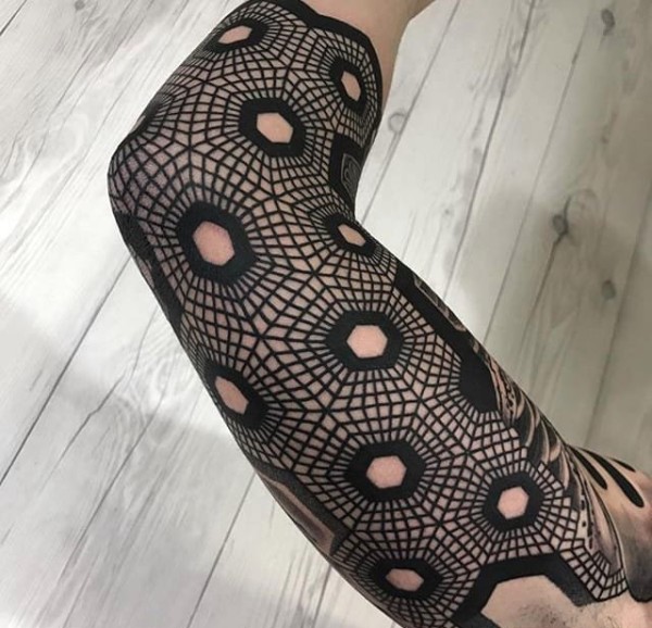 男性超霸气的几何满臂纹身图案来自纹身师尼萨科