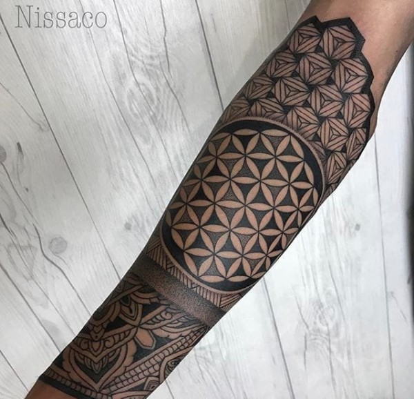 男性超霸气的几何满臂纹身图案来自纹身师尼萨科