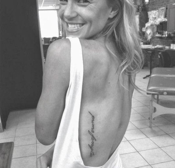 女生后腰纹身黑白灰风格抽象线条纹身图案