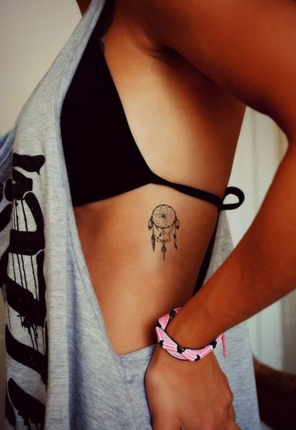 女性性感侧肋上漂亮的纹身图案